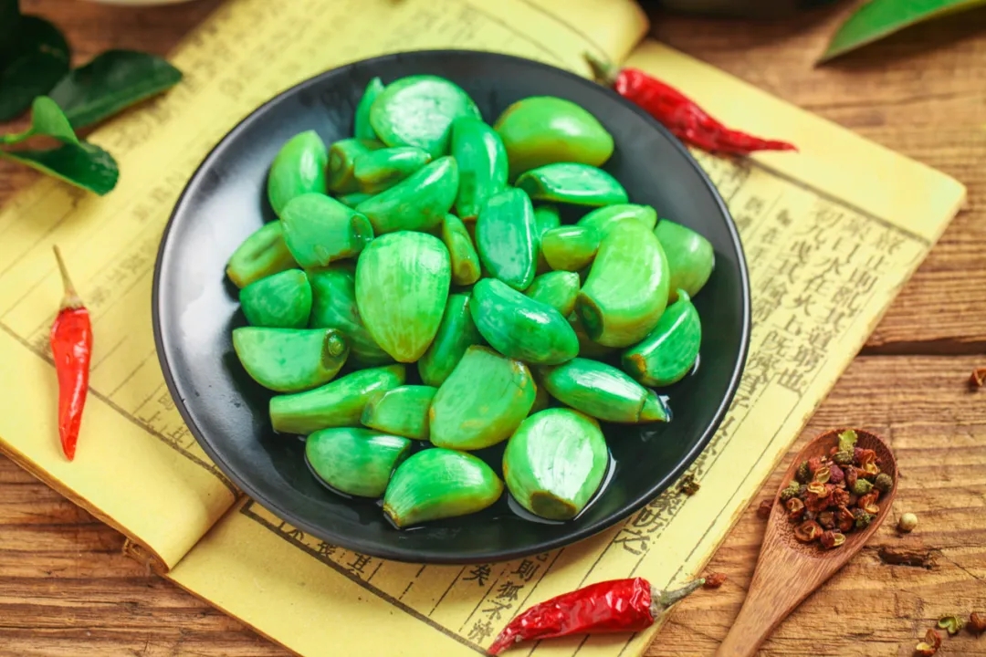 此外,全國各地還有做臘八面、泡臘八蒜、曬臘八豆腐等食俗。相傳北方之前有一些不產(chǎn)或少產(chǎn)大米的地方,人們不吃臘八粥,而是吃臘八面。泡臘八蒜,即將蒜瓣去掉老皮,浸泡在醋中,到了過年搭配餃子吃,是北方尤其華北地區(qū)的一個習(xí)慣。民間還有“蒜”與“算”字同音,商戶要在這天算清收支盈虧的說法。
